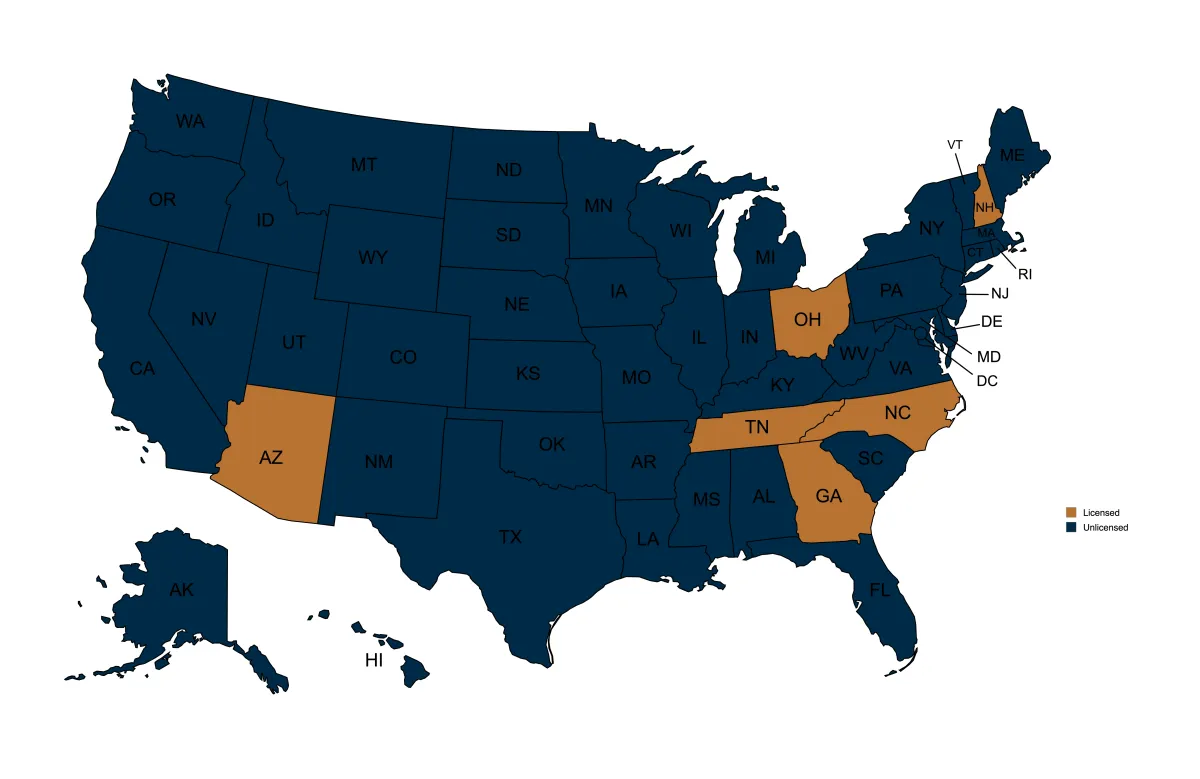 AZ: BK-1037959 | GA: 2179191 | NC: L-211751 | NH: 1321933. |. OH: RM.804928.000 | TN: 2179191